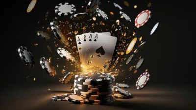 four Aces in a card game, with dice in the background, illustrating the potential for strategic play and answering the question can you play Spades with 3 people.